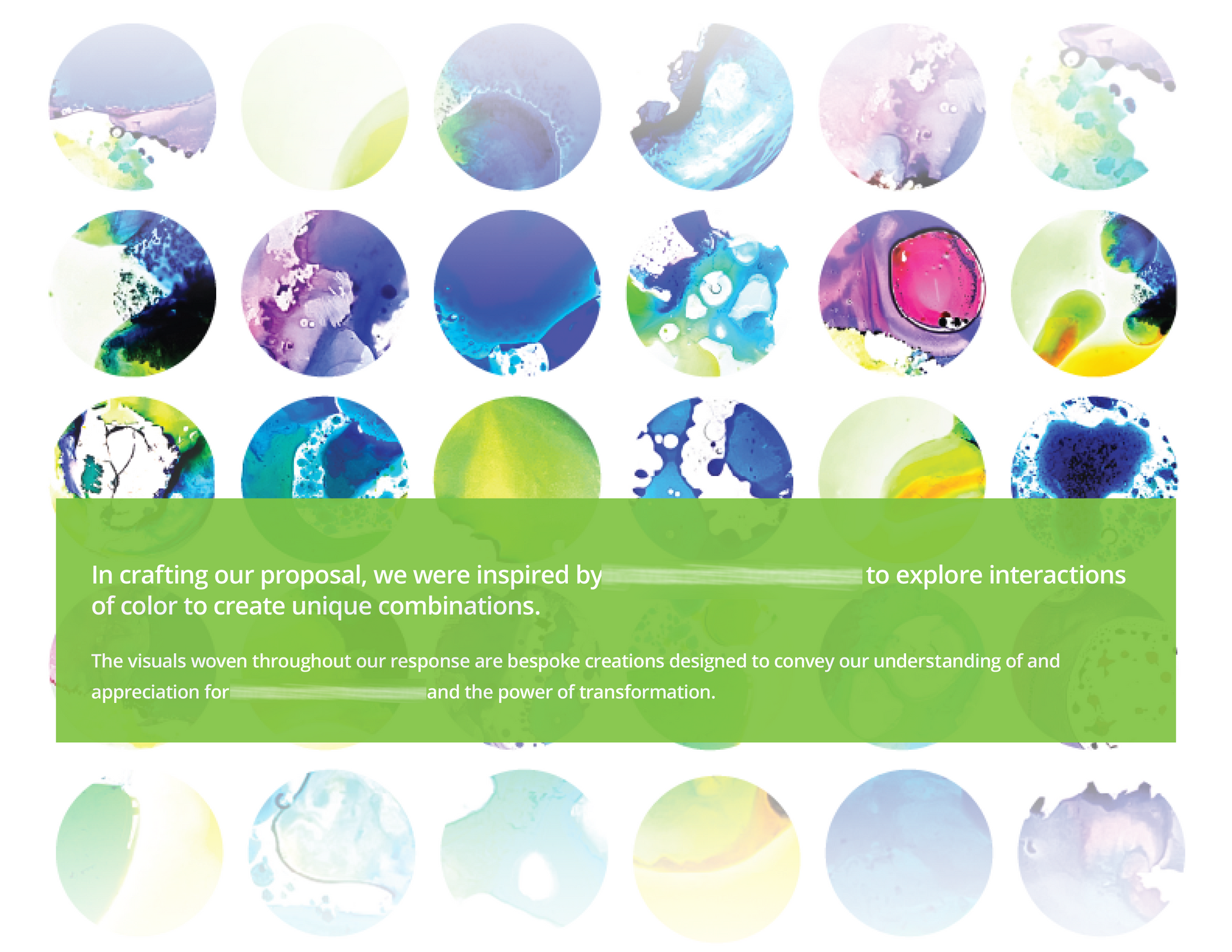 Working with the pursuit team, I developed a custom photography approach — shooting dyes, pigments, and inks mixing with oils and water, capturing the precise moment color becomes something extraordinary. The resulting images weren't illustrations or stock. They were the client's own science, made visible.